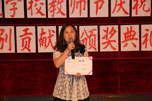 酒会之前,学校进行了特别贡献奖颁奖典礼。幼儿园、中小学分别有66位教职工分别获得了管理之星奖、金牌教练奖、科研贡献奖等8个奖项。在热烈的掌声中,获奖者登台领奖并发表感言。愉快的晚餐开始了,领导们与老师们互相表达祝福,优美的歌声与老师们愉快的笑声汇聚在一起,奏响了一曲动人的欢乐之歌。 (文:李莎莉 \ 图:张峰)