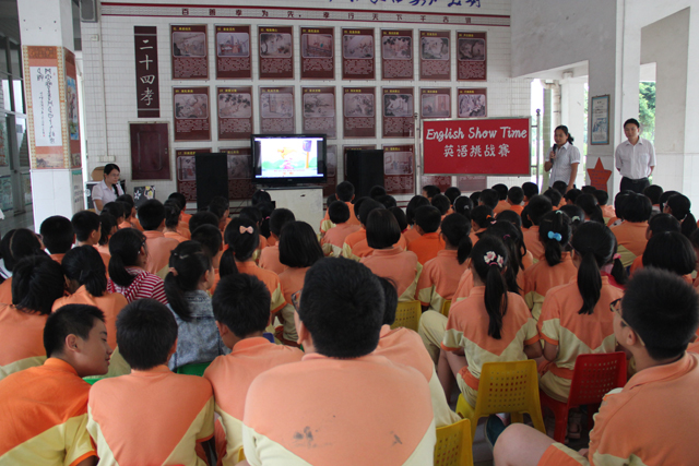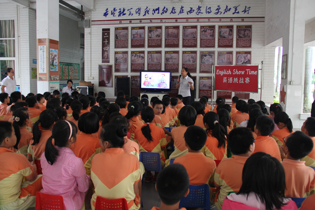 9月14日下午4::20,迎着一阵阵凉爽的秋风,六年级的英语秀活动正在如火如荼地进行着,学校的一楼大厅里欢声笑语,孩子们沉浸在欢乐中。