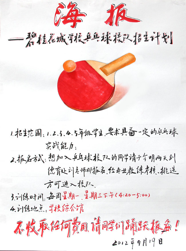 乒乓球校队招生海报