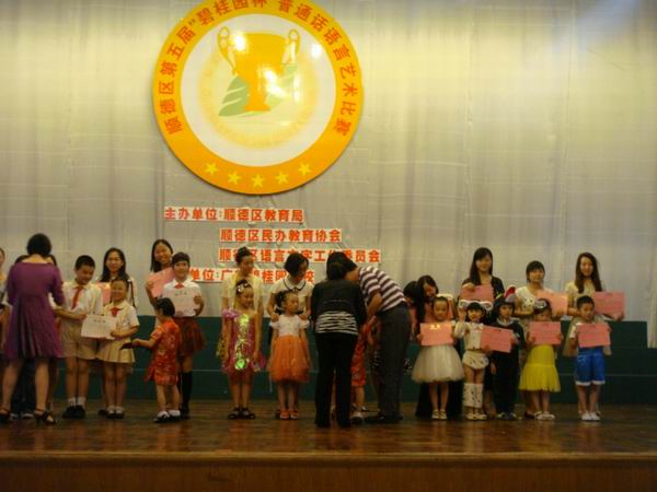 2012年5月26日8:30,广东碧桂园学校学术报告厅里传出一声声充满稚气的朗诵。为进一步提高顺德区幼儿园、中小学生普通话语言规范,顺德区语言文字工作委员会、顺德区教育局、顺德区民办教育协会、广东碧桂园学校举办了顺德区民办学校第五届“碧桂园杯”普通话语文艺术比赛。