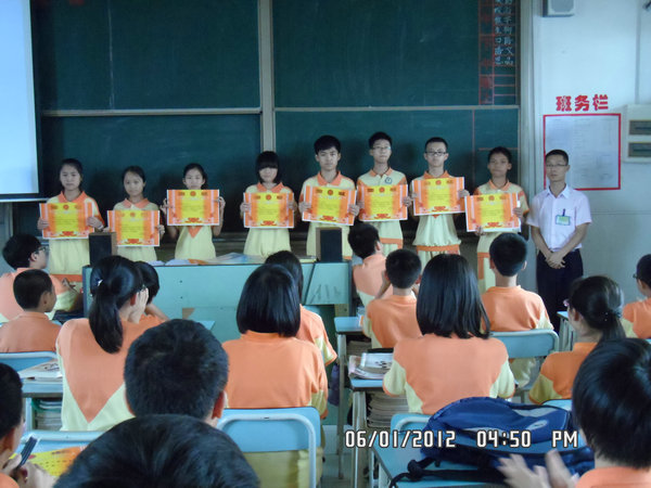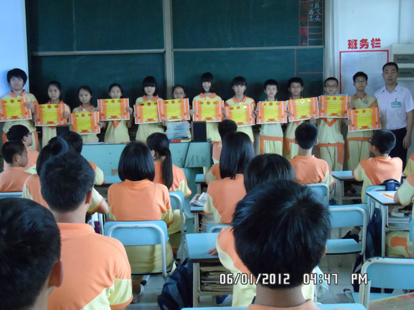 2012年6月1日,碧桂花城学校七年级隆重举行了5月月考表彰大会,会议由七(2)班班主任杨蕊老师主持,年级组长代天良老师、七年级全体师生参加了大会。