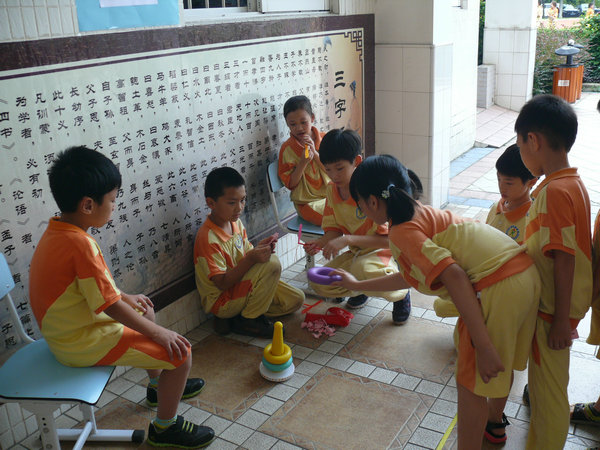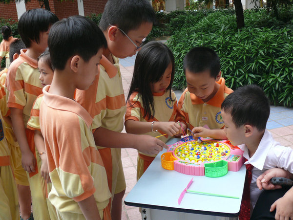 在各个活动现场,“转呼拉圈”、“小猫钓鱼”“推推躲躲”“你做我猜”、“投射乒乓球”、“快速记忆”、“掂羽毛球”、“正话反说”等各种形式多样的游园活动,吸引着许许多多同学排起了长队。他们或三五成群,或几人一组,全情投入。赢了的兴高采烈,没得分的也高兴地参加下一个活动,每个孩子的脸上都洋溢着节日的喜悦。
