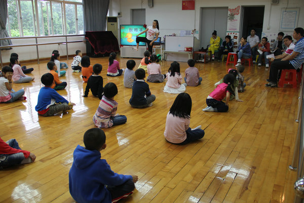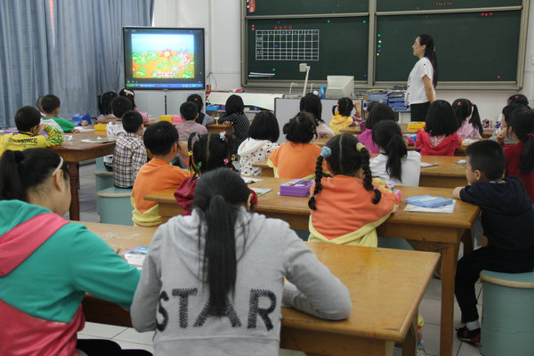 宋老师展示的是《蝶儿飞飞》。首先是激情导入,问学生现在是什么季节,现在正好是春天学生自然知道,由此让学生联想到春天的生机怏然、百花争妍,蝴蝶飞舞的景象。然后再播放儿歌《小蝴蝶》,以动听的音乐、美丽的画面来营造出一个学习氛围,引发学生对大自然感知的回忆、联想和想象,激发孩子们学习的积极性。接下来让学生谈谈对蝴蝶的感受,初步了解蝴蝶的结构特征。为了让学生更进一步了解蝴蝶,让学生欣赏各种各样非常美丽的蝴蝶图片,引导学生观察讨论蝴蝶的结构,并找出蝴蝶的形状和花纹的相同点和不同点,启发学生的形象思维和创造性思维。这样,通过听儿歌―谈蝴蝶―欣赏蝴蝶―分析探讨蝴蝶―绘制蝴蝶,层层诱导。因此,同学们绘制出来的蝴蝶,色彩斑斓、栩栩如生、独具匠心。孩子们的脸上洋溢着成功的喜悦与自豪。