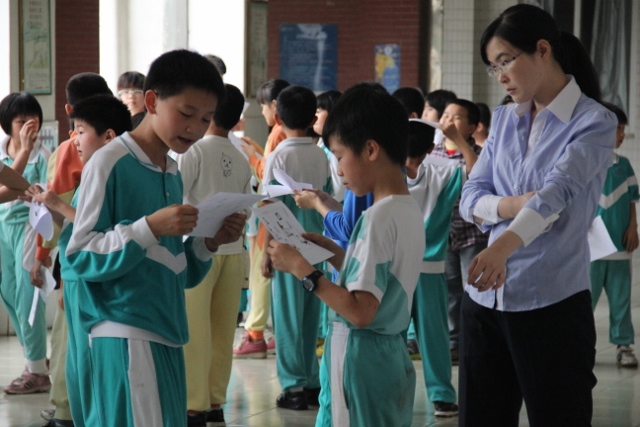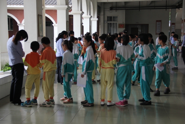 4月28日下午4:00,花城学校一楼大堂里热闹非凡。原来是四年级的全体学生在进行“English Corner”活动。