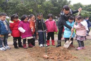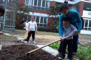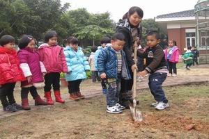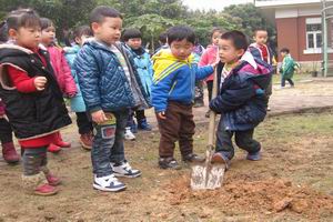 2012 年3月12日下午,花城幼儿园国际班的孩子们拿锄头、挥铲子,在老师们的带领下,一起动手为幼儿园播种绿色。