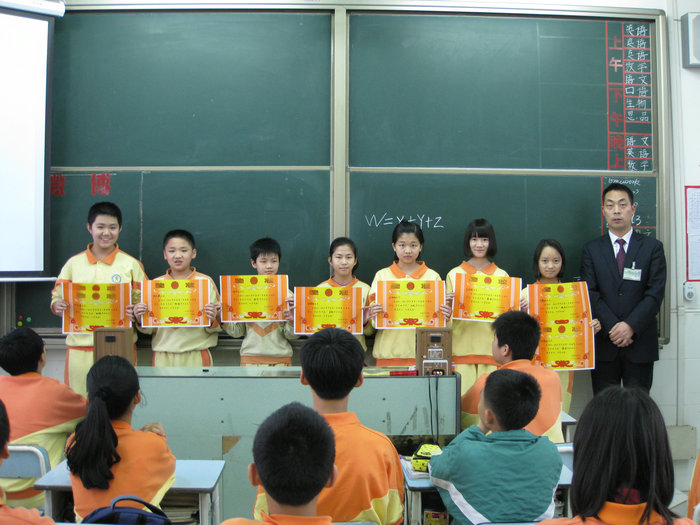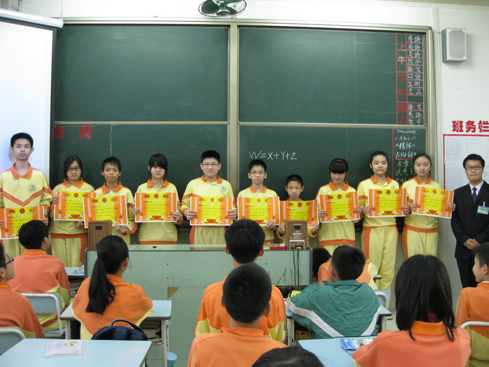 最后,杨蕊老师,王展鹏老师,胡佩红老师,代天良老师分别给获得年级前12名的同学,三月月考单科状元的同学,进步最快的同学颁奖。