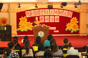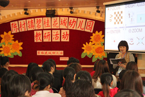 2012年3月27日上午,陈村镇各个幼儿园的园长和老师们齐聚在碧桂花城幼儿园开展教学观摩活动。为了这次的活动,花城幼儿园每个班都做了精心的准备,课程安排丰富多样,有数学、语言、音乐、美术、探究、体育、电脑、舞蹈、英语、整合课程等,无论从选材上还是形式上,教学内容都是十分新颖的。