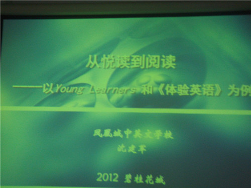 2012年3月29日上午10点,我们在二楼会议室迎来了专家沈建军,现任凤凰城中英文学校校长,曾任广东碧桂圆学校国际部校长,对我们碧桂花城学校的全体英语老师进行 Young Learners Go 的教材解读。