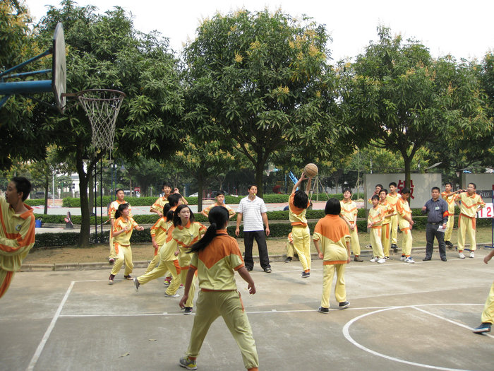 谁说女子不如男,3月30日下午,我校八年级全体女生在学校篮球场上演了一场精彩而富有激情的篮球赛,令在场所有观众、老师刮目相看。