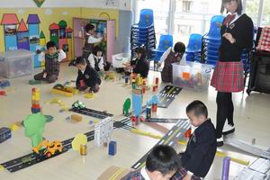 到达目的地后,在负责人谭影老师的指引下,大家参观了荔城碧桂园中英文幼儿园的环境布置。荔城幼儿园面积虽然不大,但各楼层的环境布置可谓独具匠心,她们把废弃物品合理利用,制作出各种各样的装饰品,使得每个楼层既美观大方,又赏心悦目。接下来又参观了各年级组区域活动,孩子们在区域活动中显得井然有序,都专注于他们的活动,丝毫不受外界的影响。