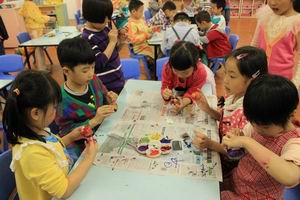 国际部的孩子们以“蛋”为主题开展混龄流水线作业活动,瞧,有的穿鸡蛋壳、有的打蛋、有的煮鸡蛋糖水、有的洗鸡蛋壳……在不同的流水线“工作”的孩子们个个都专心致志进行自己的“工作”,最后把画好的蛋及心意卡送给家人,为复活节庆祝活动画上了圆满的句号。
