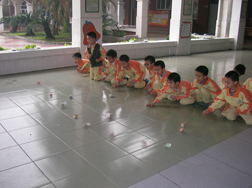 碧桂花城国际班的小朋友们踏着欢快的步伐,手捧着自己精心准备的彩蛋,在外教老师Mr.Kirwan的带领下开展了各种各样的庆祝活动。 “忙忙碌碌运彩蛋”游戏让在场的孩子好一顿忙活。三个班的孩子们按组分队,游戏的任务是将小彩蛋通过匙羹传递的方式从第一个人到最后一个人,但是要求在传递过程中,孩子不能用手碰触到彩蛋。最后,在规定的时间内看哪组传的球最多。这场面激动人心,欢声笑语不绝于耳,孩子们玩得开心极了。