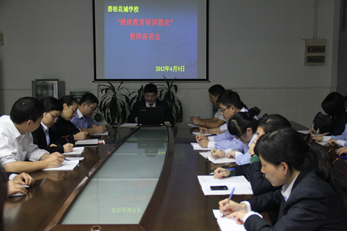 为了进一步推进教师培训力度,提高培训的针对性和实用性,明确继续教育的要求,碧桂花城学校于4月9日晚在会议室召开了“继续教育培训要求”座谈会。教师代表二十一人出席了会议,会议由教学处谭主任主持。