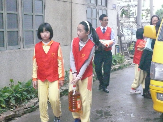 3月5日下午三点,在“顺德好人”梁淑鸣女士和合成居委会工作人员的带领下,我校两名教师代表、四名学生代表先后走访了陈村镇两户困难家庭,分别为他们送去了500元现金、一袋米和一桶油,解决了他们生活上的燃眉之急。