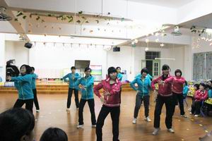 2012年3月5日晚上7:00,花城幼儿园的老师齐聚一堂,开展了2012年下学期全园教师新早操展示、交流活动。