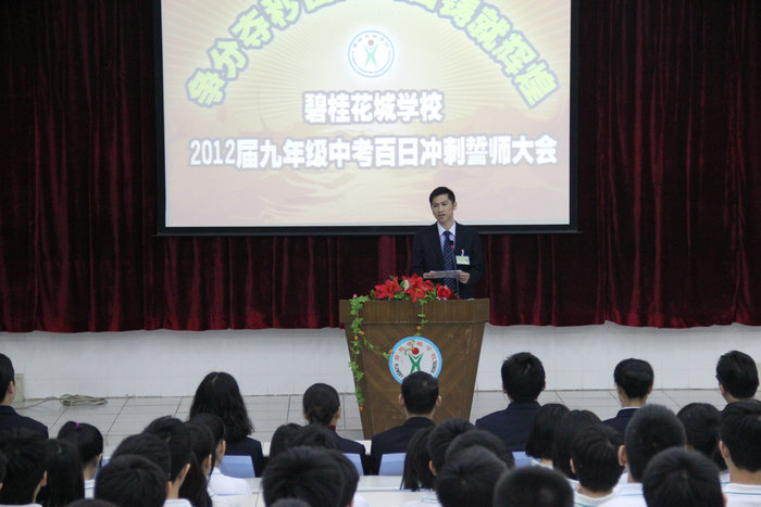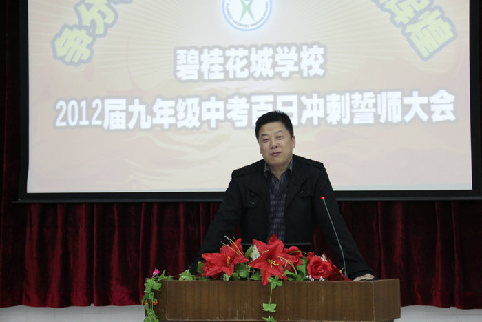 3月8日下午,春雨绵绵,春意盎然。我校九年级“迎中考百日冲刺誓师大会”在阶梯教室隆重召开,贺校长出席本次大会并作了重要讲话,出席大会的还有七、八年级全体师生。大会由九(1)班孙浩林同学主持。