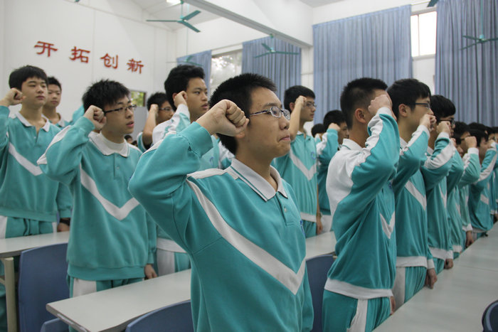 九(1)班余瑞腾同学代表全体同学在发言中表示:牢记学校重托,感谢恩师教诲,不忘父母期待,为了青春梦想,顽强拼搏,乐战不怠,全力以赴,铸造人生辉煌。