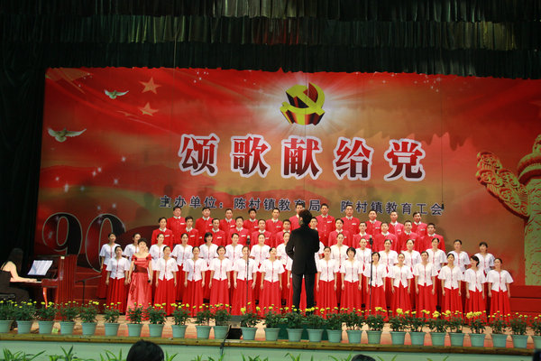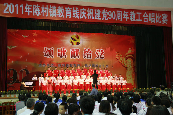 为了隆重庆祝中国共产党成立90周年,充分展示我镇广大教职员工昂扬向上的精神风貌,陈村镇教育局、镇教育工会特组织了此次教工合唱比赛,全镇共有十八所中小学18支合唱团参加比赛,经过紧张而激烈的角逐,我校教工合唱团不负众望,总分在18家学校中名列第四,获得一等奖。