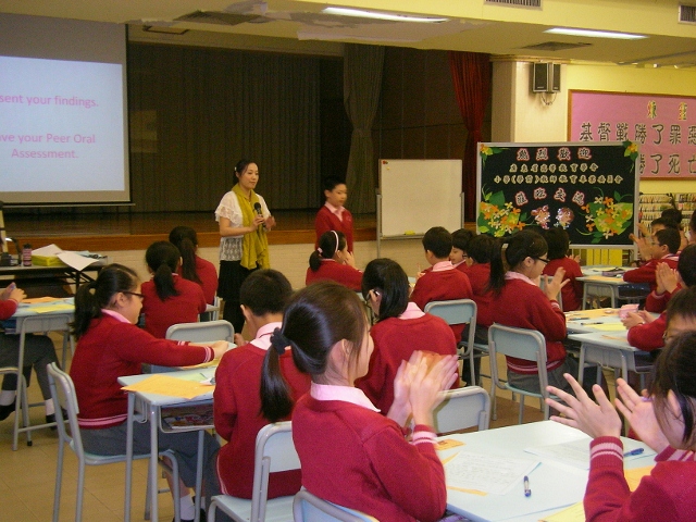 11月24日上午,我们到此次交流活动的第一站:黄大仙天主教小学。黄大仙天主教小学一直致力于推动关爱文化发展,学校以“自强不息”为校训,积极建立关爱、正义、平等的校园。在这所学校里,我们听取了两节有关英语阅读的常规教学课,第一节是由30多年教龄的外籍教师Ms Rawson主讲的以Little Red Riding Hood为主题的三年级英语阅读教学课。在课堂上,Ms Rawson很注重阅读与写作的有机结合。第二节是六年级的话题英语阅读教学课,在这堂课的教学过程中,执教老师很注重培养学生运用英语合作交流能力和读写能力。这两节课都体现了黄小老师在共同备课及教学中选取合适单元或学习范畴,利用合作学习的模式 (包括 pair check, numbered head together, think pair share, round robin, team word webbing 等策略)设计及实践相关的教学活动,并配合提问反馈以优化课堂,提升学生学与老师教学效果。