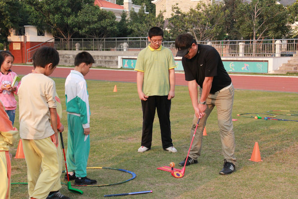 11月30日下午,我校团委有幸邀请到了万科水晶城名将高尔夫教学中心的四位教练,他们亲临我校给学生上了一堂新颖、有趣的高尔夫体育课。他们的到来,受到了同学们的热烈欢迎,四位教练也是非常耐心细致地给同学们讲解动作、示范动作,并对同学们的表现大加赞赏。此次高尔夫进校园是对高尔夫走进课堂的一次大胆尝试,也是为同学们铺就美好人生打下良好的基础。(文\图 刘志伟)