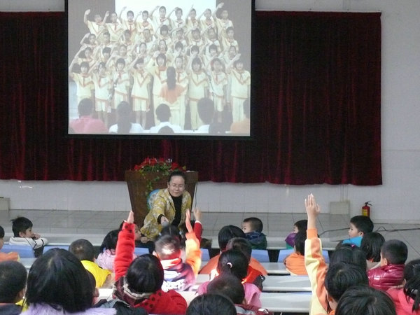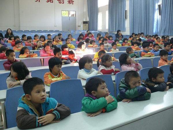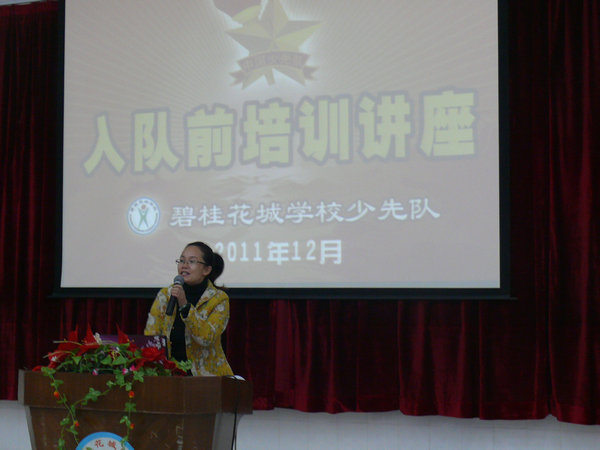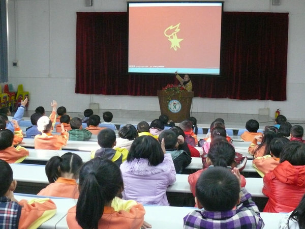 2011年12月2日下午第二节课, 一年级所有学生在阶梯教室参加了中国少年先锋队入队前培训活动。