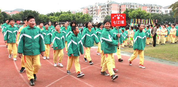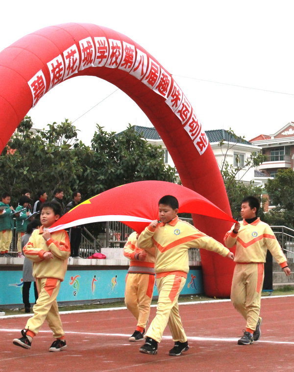 本次运动会一、二、三、四年级主要以趣味游戏为主,目的就是让学生在游戏中去锻炼,在游戏中去体验团队合作精神;五、六年级主要以田径比赛为主,这是花城学校第一次在趣味运动会中加入田径比赛项目,运动员们在各项比赛中展示了较好的动作技能;七、八年级主要以体育中考项目为主,每一个学生都要参与,目的是引导学生积极锻炼身体,为体育中考做准备。