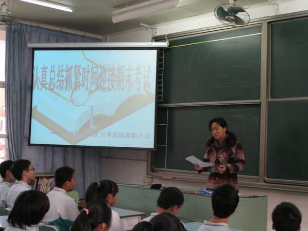 会上,代老师将这次考试的具体成绩进行了通报,向在这次月考中取得优异成绩的同学表示热烈的祝贺,也对这次月考所反映出的问题进行了具体分析,同时对学习上有问题的学生提出了自己的建议和希望,进一步明确了下一步的努力方向。