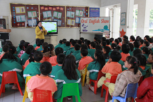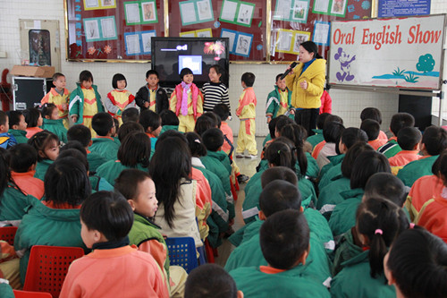 “让孩子轻轻松松学好英语”,英语组经常组织各种形式的活动,创设生动的情境,让孩子在活动中学习,大胆展示自己。“英语秀”一直是孩子们最喜欢的一种交流学习活动。12月16日,一年级孩子们踏着欢快的步伐走进了学校大堂,在 A beautiful day 轻快的歌声中英语秀开始了!第一轮单词填空比赛,第二轮谜语猜猜看,第三轮图片记忆比赛……在一轮一轮的小比赛中,同学们争先恐后,个个拿出看家本领,积极举手,踊跃回答,将气氛一步步推向了高潮。