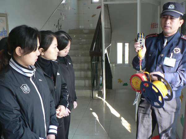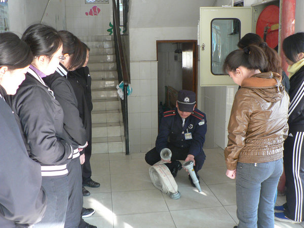 队长针对冬季干燥的天气,向老师们讲解了如何预防校园及寝室火灾、如何正确报火警、怎样扑救初起火灾、火场逃生要领和逃生的注意事项等基本消防安全常识,然后示范消防栓和逃生绳的用法,现场指导新老师体验了手提式干粉灭火器扑灭“火灾”的过程,切实使老师们掌握到基本的应对突发性事件的处理方法。队长还强调,消防工作要将“防”与“消”紧密结合,时刻警惕,才能将真正消除火患。