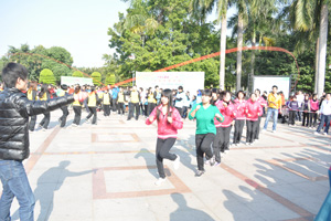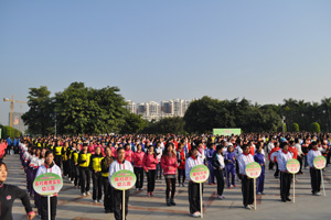 随着音乐的响起,全场所有的老师们一起动起来,动感的音乐打破了早晨的宁静,运动会在老师们充满活力的千人健身操中拉开了序幕。此次运动会本着加强老师们之间的交流、享受运动的快乐的原则,各个学校都是积极参加,而花城老师更是如此,在赛场上英姿飒爽。