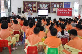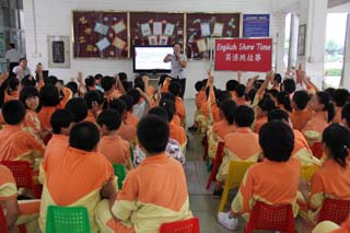 Miss束优雅地拿起话筒,脸上洋溢着微笑出现在同学们的前面。在她那流利的英语开场白中,英语秀拉开了序幕。首先是Lucky Number, 同学们都希望自己是最幸运的,希望老师选到自己来回答问题。What’s your hobby? When is the National Day in China? 等问题对同学们来说是多么容易啊!看,很快就回答出来了。接下来轻松一刻,同学们纷纷唱着英语歌曲Everybody Jump, 同学们唱得可欢快了。然后是分班唱,每个班的同学都想为班争光,唱得更积极呢!再接下来是Form Sentences, 这可难不倒我们平时努力学习的同学们。听!刚一出来的词,很快就被同学们说出一个个完整的句子。 What day is it today? There is a cup of tea. How often do you have sausages? 等句子都在同学们口中流利地说出。找不同是同学们最喜欢的环节,因为啊,这是要考大家的眼力和语言表达能力,大厅里顿时出现很多高举的小手。最后一个环节是Riddles,猜谜语是很有挑战性的一个环节,同学们摩拳擦掌,争先恐后,一个个谜语答案被他们用英语讲了出来。