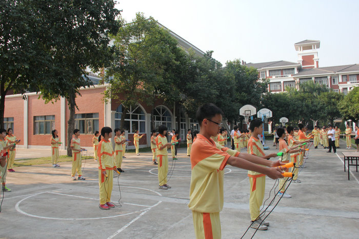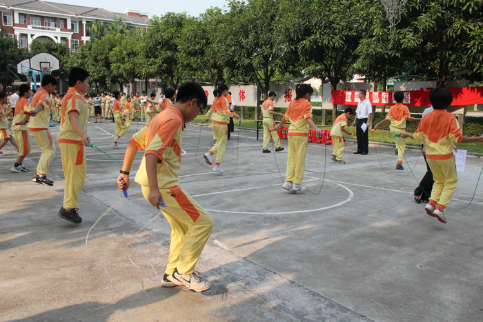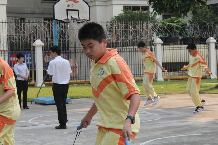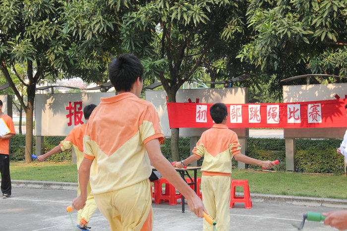 由于跳绳是中考体育考试项目,一直以来我校都十分重视跳绳训练。为了让同学们进一步认识到跳绳的重要性,也为了丰富同学们的校园生活,按照学期初计划,在年级组长代天良老师的精密部署下,有计划有组织地开展了此次跳绳比赛。