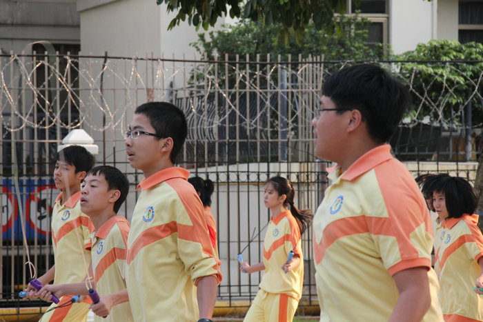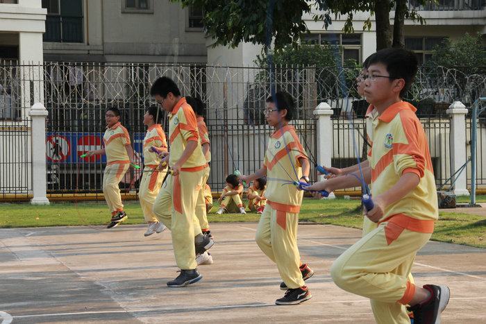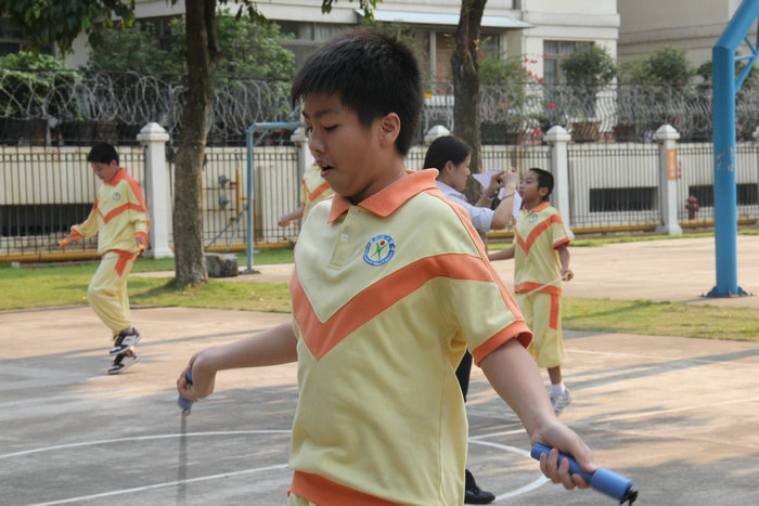 21日下午3:20,比赛正式开始,首先进入场地的是七年级组,虽然七年级学生入学才两个月,但他们的跳绳技能进步很快,动作娴熟,而且对待比赛的态度非常端正,人人都不甘落后,在有限的时间内争分夺秒地坚持到最后。虽然中途有同学绳子绊住了,但他们并没有放弃,而是重新甩起绳子,坚持到总裁判的结束哨声响起。