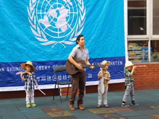 小班的小朋友在干什么呢?哦,他们的小男子汉们在外教老师Mr.Andy的引导下,一边弹着吉他一边唱着墨西哥民谣;女孩子们在班级老师的带领下跳着墨西哥舞,那种感觉还真的表现出了墨西哥的民族风情呢!国际小班还制作了地道的墨西哥TARCO和辣椒牛肉,在场的家长在品尝后也是赞叹不已。他们虽然是第一次参加这个活动,但能看出小班小朋友的动手能力确实很棒哦!