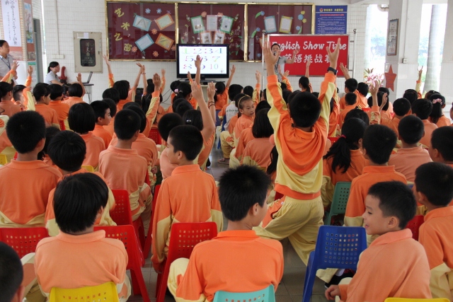 活动从“sing a song”开始,中间经历了“Lucky numbers”、“Find the difference”、“IQ test”;最后再以“Form sentences”结束。五个节目中,学生热情高涨,忘乎所以地参与进来:集体唱歌时,声音洪亮、圆润、整齐、有如天籁;个人抢答时,姿势坐得老正,小手举得老高,声音喊得老响,害怕主持人看不到、听不见而失去了表演机会,答对的“趁胜追击”,答错的“知耻而后勇”……一眨眼功夫,短短四十多分钟的活动结束了,学生意犹未尽,体味着刚刚过去的激动与快乐……多想让时光停留一下!