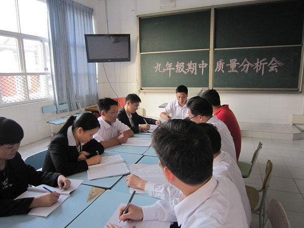11月11日下午5点半,刚开完初中期中表彰大会,九年级组全体教师又移步辅导室,举行了期中检测质量分析会。