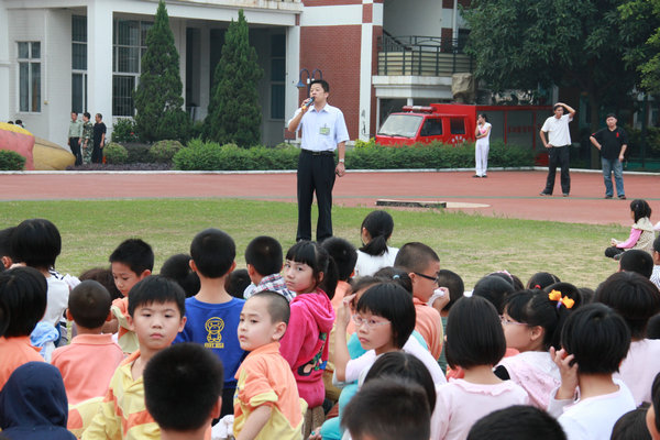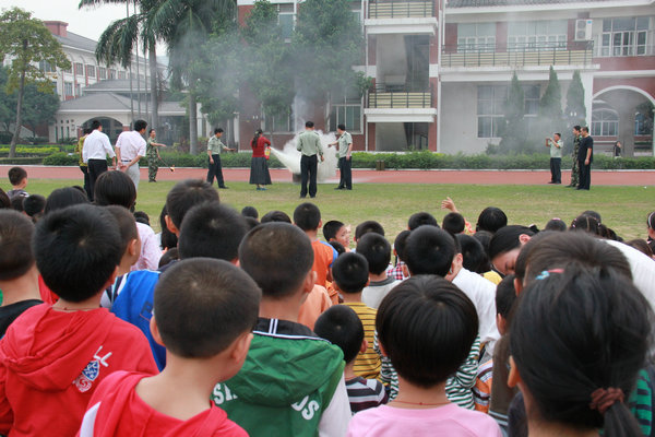 紧接着,陈村武警消防中队赖警官对我校的火灾疏散演习进行了点评。同时,就如何进行火场逃生,怎样进行人员疏散,火场逃生应注意哪些问题等常识性内容,赖警官深入浅出地向同学们讲解了有关火灾的预防,火灾报警、逃生等一系列的消防知识。