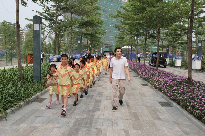 六一儿童节这一天,小学国际班的孩子们乘坐着校车前往万科水晶城参加高尔夫亲子活动。