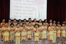 本次活动旨在展示低年级组语文学科一学期来经典诵读的成果。活动中,一年级同学诵读的《三字经》,带领我们再次感受了国学经典的博大精深;二(1)、二(3)班表演了《古诗联唱》、《古诗连诵》,他们用挚爱去诵读亲情、友情的场景又是如此的动人心弦;与经典同行,与圣人为伍,二(2)、二(4)班表演了《弟子规新唱》、《弟子规》,同学们深情的吟诵,让在场的师生仿佛回归了心灵的家园。