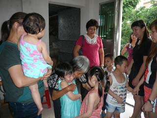 2011年6月14、15日,幼儿园中班大班的孩子们,每班派出三名代表、三位家长,与老师一起前往佛山妇联提供的周边地区困难户进行慰问。看到他们破破烂烂的房屋,看到他们破旧的衣着,我们都感到很心酸。