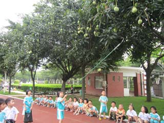 在这芒果飘香、硕果累累的日子里,我园请来清洁阿姨和老师们一起采摘成熟的芒果。只见阿姨们垫起脚、轻轻一压树枝,树上的芒果刷刷地往下掉,还有的小朋友也拿着长长的竹竿尝试着把自己“钟意”的芒果打下来。在旁观看的孩子们欢呼齐声欢呼:“啊!下芒果雨啦。”“叔叔加油!”……孩子们手拿袋子在树下开心的捡起了芒果,那袋子满载着熟透了的芒果.满载着孩子们的笑声。