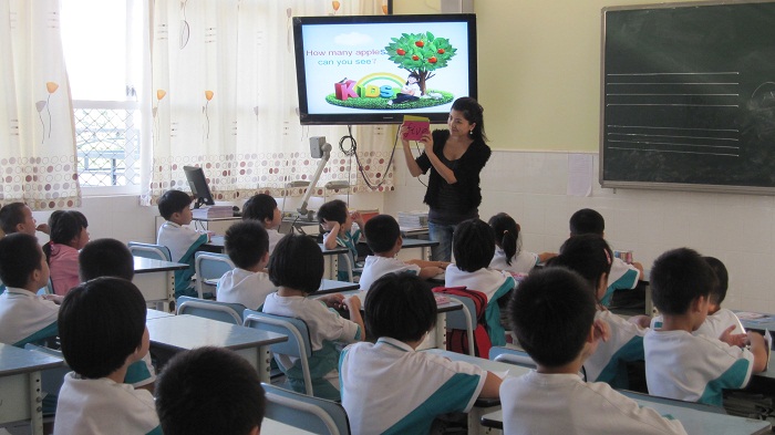 进入本学期第四周,教学处安排了各科新教师亮相课。一年级的陈坚老师在周二上了主题为“How many apples”的公开课,全体英语教师到场聆听学习。