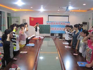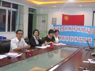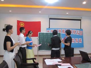 2011年5月3日,幼儿园举行了“共青团碧桂花城幼儿园支部委员会成立仪式”,出席本活动人数为28人,其中我们邀请了碧桂花城学校团总书记刘志伟老师,刘老师在讲话中给了我们肯定和团委今后的发展方向。24位团员老师在团旗下庄重地唱起了《中国共青团团歌》重温了入团宣誓,举起右拳宣读自己的誓言。仪式中我们通过无记名投票方式直接选举产生了以虞秀梅为书记,梁爱琼、林慕青、张淼、叶青云为委员的新一届团支部委员。