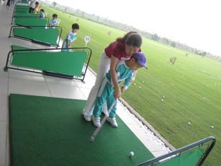 为了拓展孩子们的视野,本学期我园每月都会安排国际班的小朋友们外出进行实践活动。自从四月份组织孩子们到万科水晶城体验打高尔夫球活动之后,五月16、17日两天,幼儿园又一次组织两个国际班的孩子到高尔夫球场练习打球。而这一次与之前不一样的是,我们邀请了家长参加。爸爸妈妈的参与让孩子们兴奋不已,个个都希望在爸爸妈妈面前表现出自己最好的一面,大家在练球的时候都表现得异常地认真和投入。瞧,孩子们挥杆的姿势很不错吧!部分小朋友还能把球打很远呢。