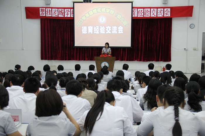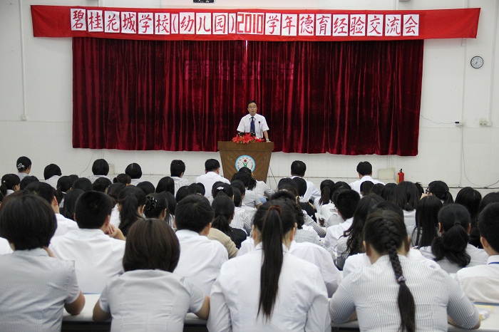 为建设一支德才兼备、敬业奉献、敢于创新的教师队伍,为培养一批学习型、研究型的德育工作者,也为老师们搭建一个相互学习交流的平台,5月23日下午6点40分,2010学年碧桂花城学校(幼儿园)德育经验交流会在阶梯教室召开。交流会由德育主管赵老师主持。