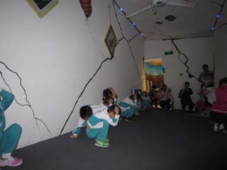 今年5月12日,是汶川大地震三周年纪念日,也是第三个全国防灾减灾日。国际班借此机会开展了如何在地震中安全逃生的活动。