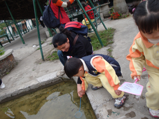 第三站:捉小鱼,捉泥鳅;脱去鞋,抽起裤角,弯下腰,比一比,看谁手快?谁捉的最多?