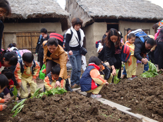 第一站:种菜,孩子们自己翻地,自己种菜,自己浇水,体现了“锄禾”的精神。