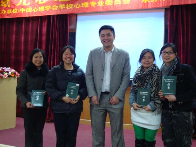 2011年3月,我园梁园长和三位级组长参加了由中国心理学会学校心理专委会主办、广州津心教育承办的“第十六届幼儿心理健康教师专业(B级)”培训班。本次培训班共四天课程,主办方邀请了专家学者冯夏婷教授、黄建榕教授、王玲教授、刘学兰教授、张小远教授、吴海勇博士等进行授课。培训课程让我们深入了解了幼儿的心理发展的特点和规律,学习掌握了开展幼儿心理健康教育课程的方法和技术,也学习了许多专业的心理健康和心理咨询知识,真正认识到了心理健康的重要性。相信本次培训会给幼儿园开展幼儿心理健康教育提供理论基础和实用的操作模式范本,对幼儿园日常工作起到积极作用。