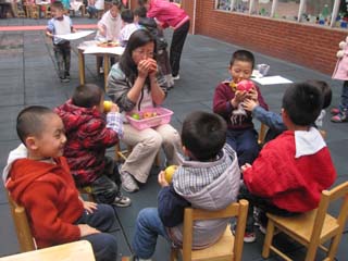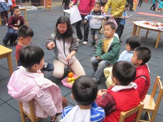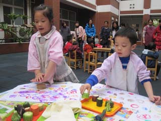 本次展示的UOI活动内容是国际班正在开展的主题探究活动内容。国际大班开展的活动主题是――循环再用,孩子们在活动中展示的是如何再利用生活中的废旧物品装饰房子制作社区、制作衣服、制作艺术花瓶,在活动中认识到再利用可以让我们的生活更美好。国际中班开展的活动主题――植物,孩子们在活动中展示猜水果、水果拓印画、画植物等活动,在活动中了解到了不同的植物需要的不同,植物和我们的关系。